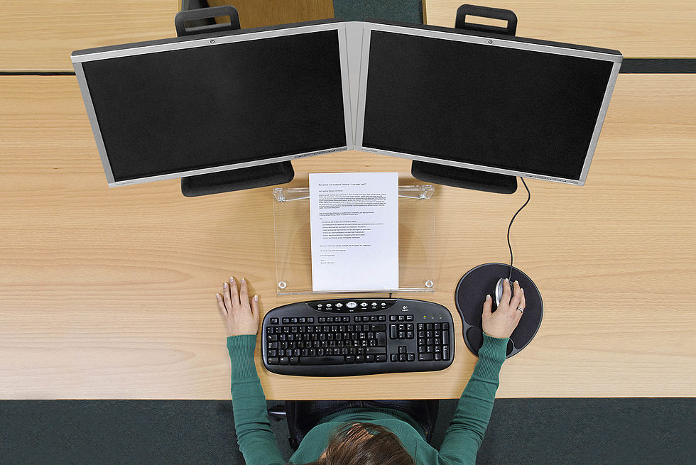 Veillez à ce que vos documents de travail ne se trouvent pas entre vous et le clavier, mais entre le clavier et l’écran. Si possible, le clavier, les documents et l’écran doivent se trouver sur une même ligne.